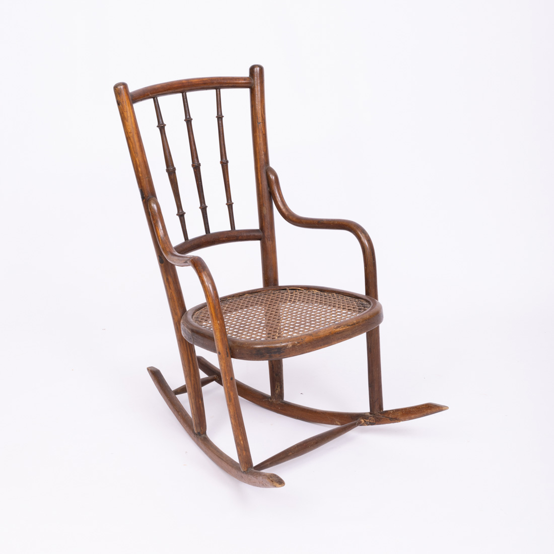 Em madeira com elementos torneados, assento em palhinha. Pequenos defeitos e restauros.