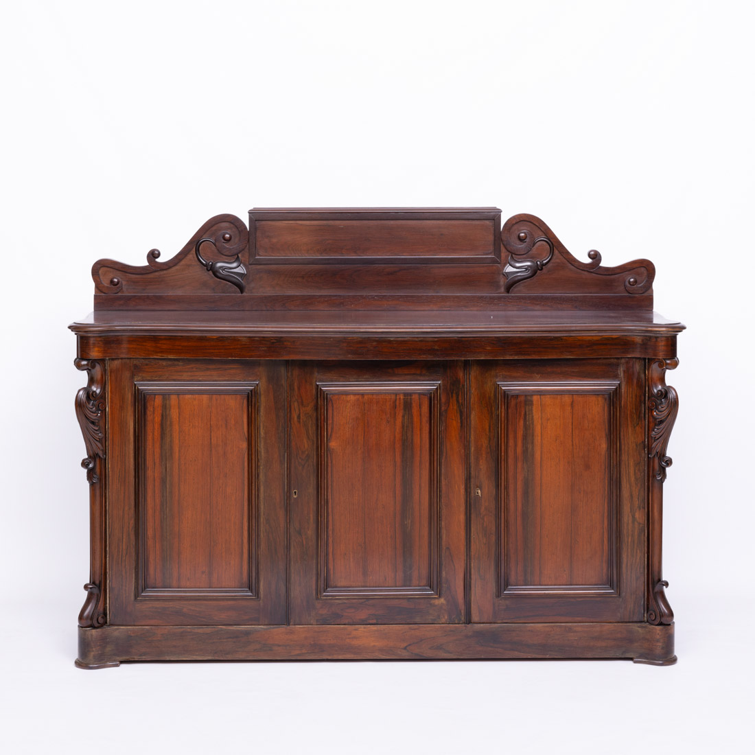 Em pau santo e folheado a pau santo com entalhamentos, de três portas. Pequenos defeitos.