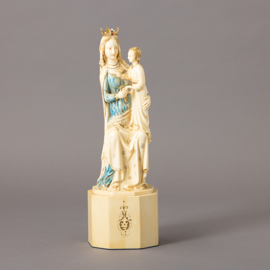 Escultura em marfim, decoração policromada e dourada. Europa. Sinais de uso.
