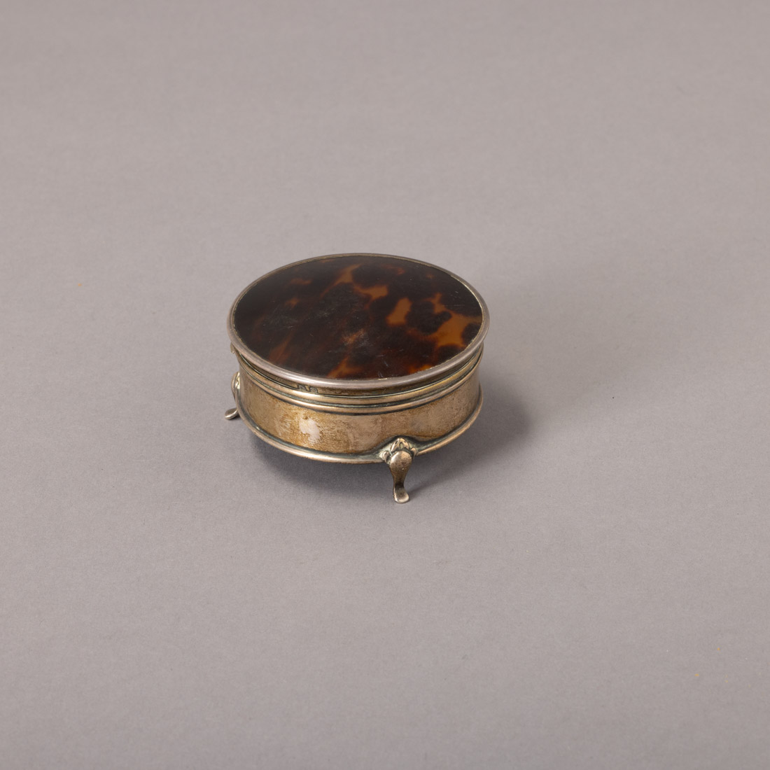 Em prata inglesa do Séc. XIX, marcas da cidade de Birmingham (1899), interior revestido a veludo, tampa em placa simulando tartaruga. Sinais de uso.