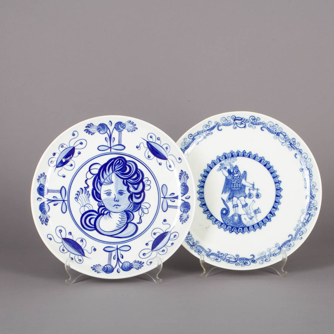Em loiça de Viana do Castelo, decoração a azul ao gosto do Séc. XVII. Sinais de uso.