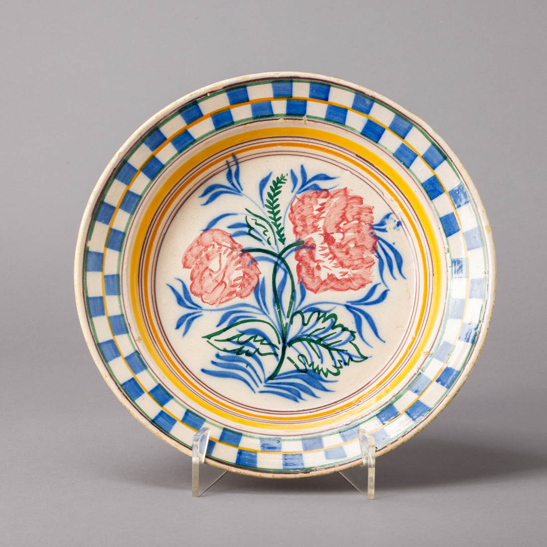Em faiança portuguesa, decoração policromada "flores". Séc. XIX/XX. Pequeno desgaste no vidrado do bordo.
