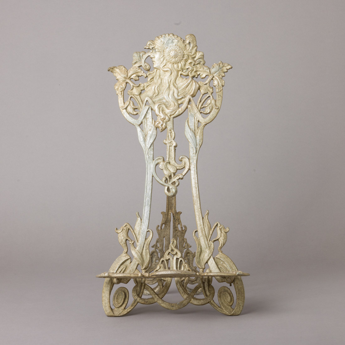 Estilo Arte Nova, em liga de metal pintado. Sinais de uso.