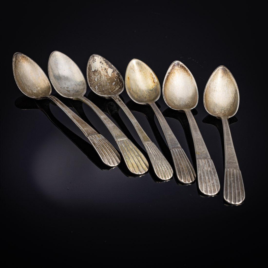 Em prata portuguesa do Séc. XIX/XX, de diferentes marcas de ensaiadores e ourives, decoração caninhas. Sinais de uso.