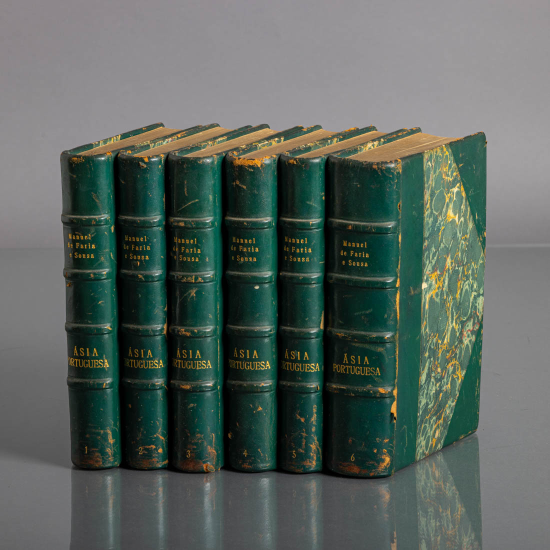 Em seis volumes, por Manuel de Faria e Sousa. Biblioteca Histórica - Série Ultramarina. Livraria Civilização Editora. Porto. 1945-1947. Meia encadernação de pele com ferros a ouro. Sinais de uso e pequenos defeitos.