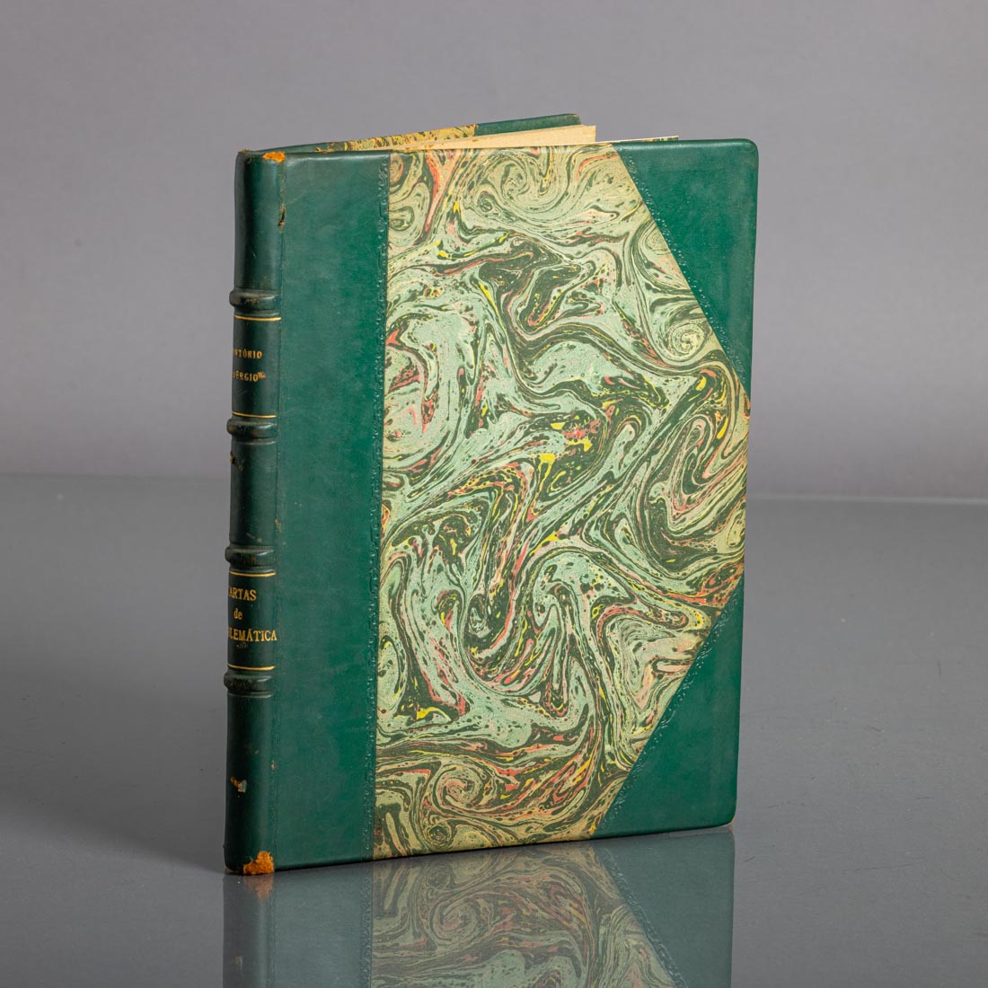 Livro de António Sérgio, dirigidas a um grupo de jovens amigos, alunas e alunos da Faculdade de Ciências. Carta Nº 1 a Nº 7, 1952 a 1953, meia encadernação em pele com ferros a ouro. Sinais de uso e picos de acidez.