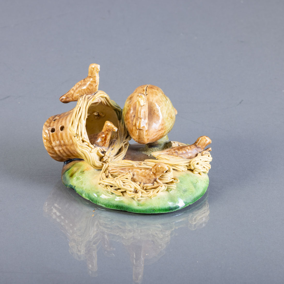 Em cerâmica vidrada, decoração policromada, possivelmente das Caldas. Pequenas falhas.