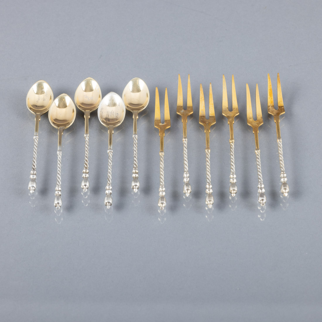 595. CONJ. DE 6 GAR PARA APER. E 5 COL. DE CAFÉ - Em prata portuguesa P.A. 69,7 g.