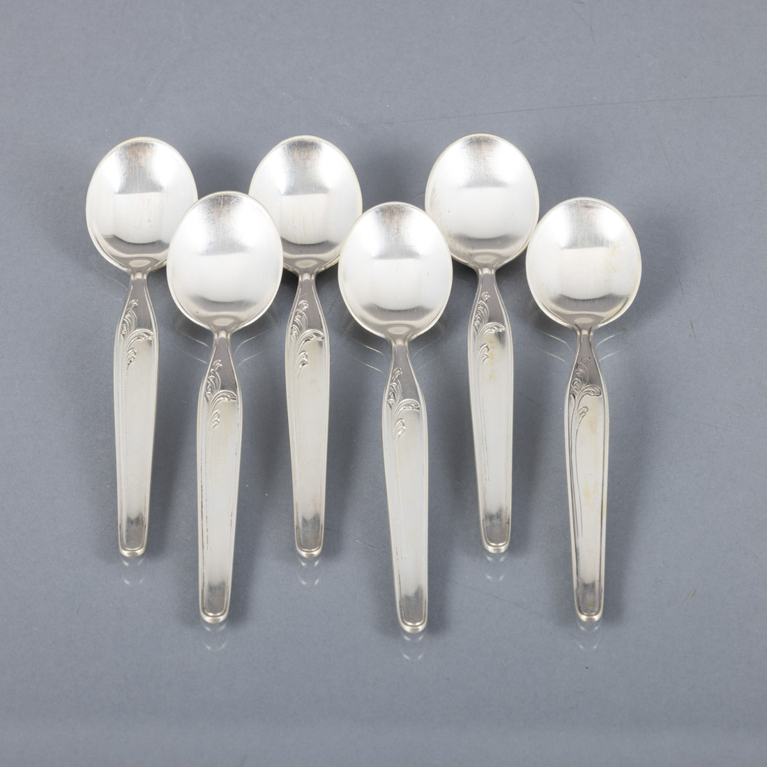597. CONJUNTO DE SEIS COLHERES DE CHÁ - Em prata portuguesa P.A. 132 g.