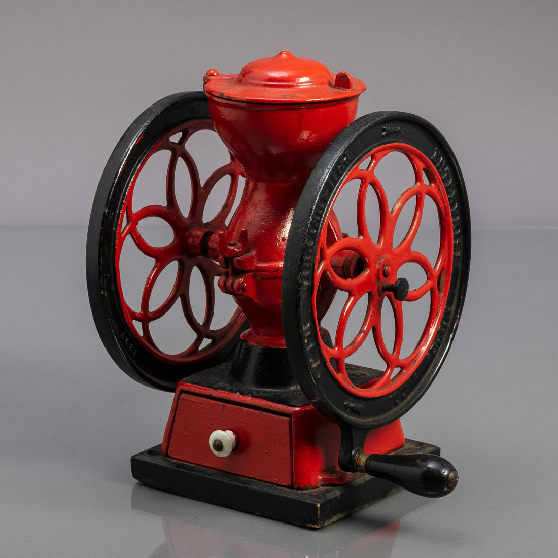 Em ferro fundido pintado, base em madeira, marcada Philadelphia USA. Enterprise Mfg. Co. Cerca de 1900. Sinais de uso.