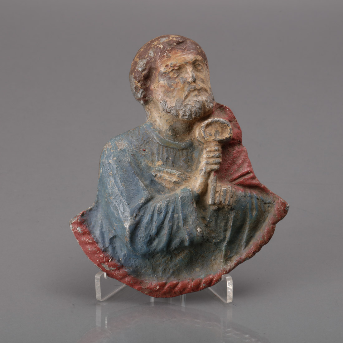 Em chumbo relevado com pintura policromada. Séc. XIX. Falhas na pintura.