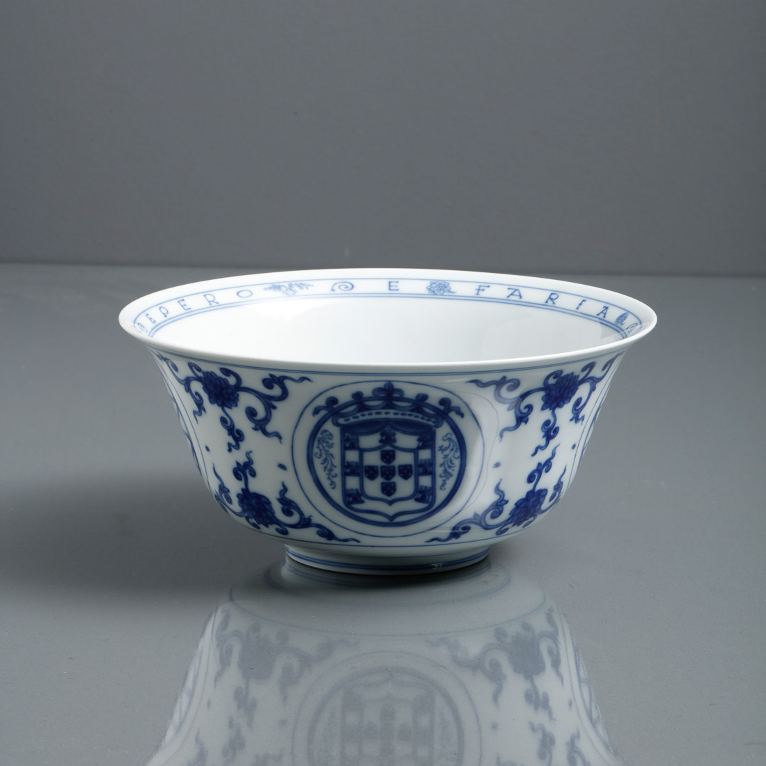 Em porcelana moldada, decoração a azul, de inspiração oriental "Armas de Portugal e Esferas Armilares". Edição especial 1994.