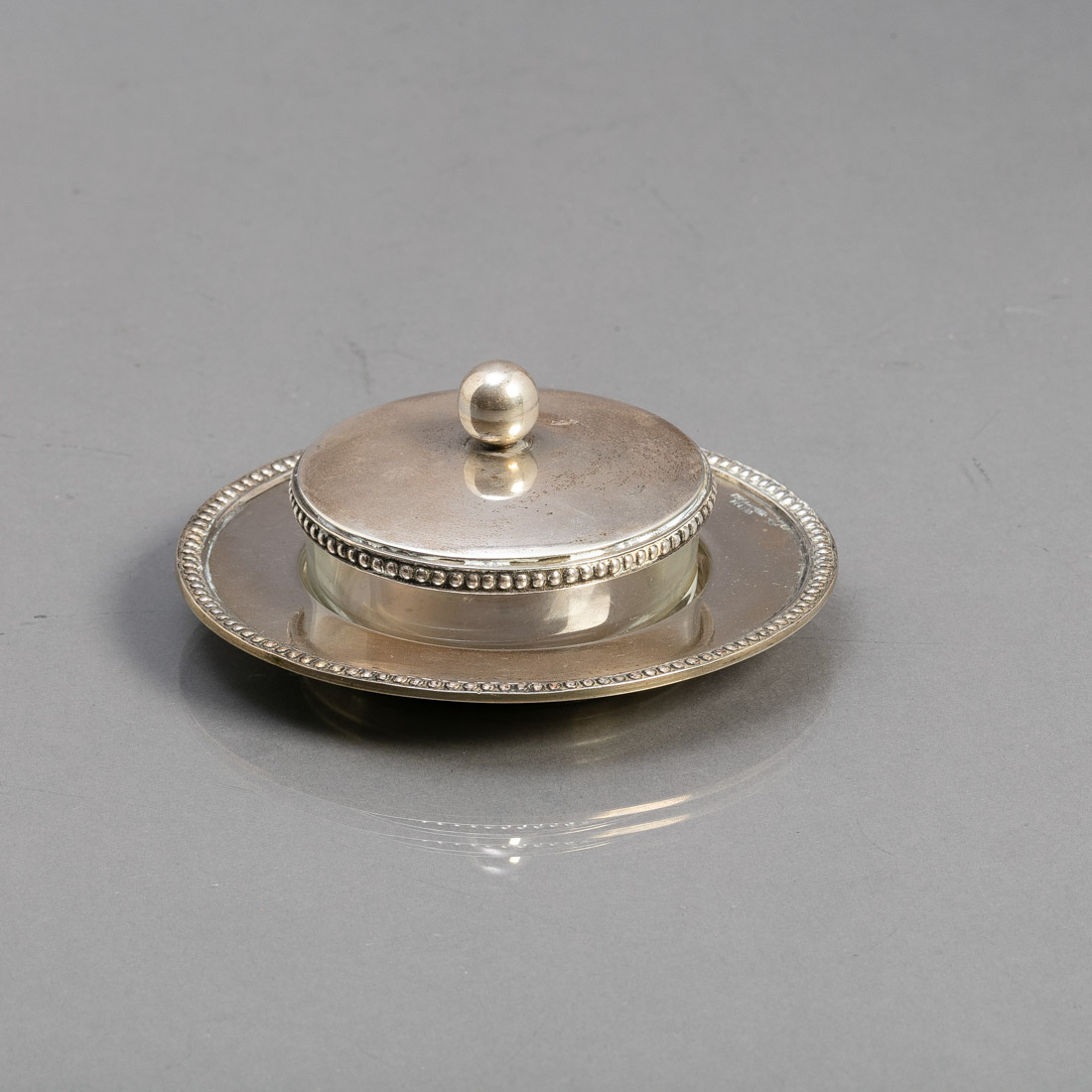Em prata portuguesa contraste águia (1938-1984) de 833, decorada com friso de perlados, marcada Reis Joalheiros - Porto. Falta de recipiente em vidro. Sinais de uso.