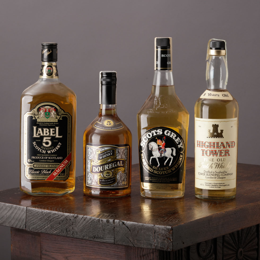 700. WHISKY LABEL 5, HIGHLAND TOWER 5 ANOS, DOUREGAL 5 ANOS E SCOTS GREY DE LUXE