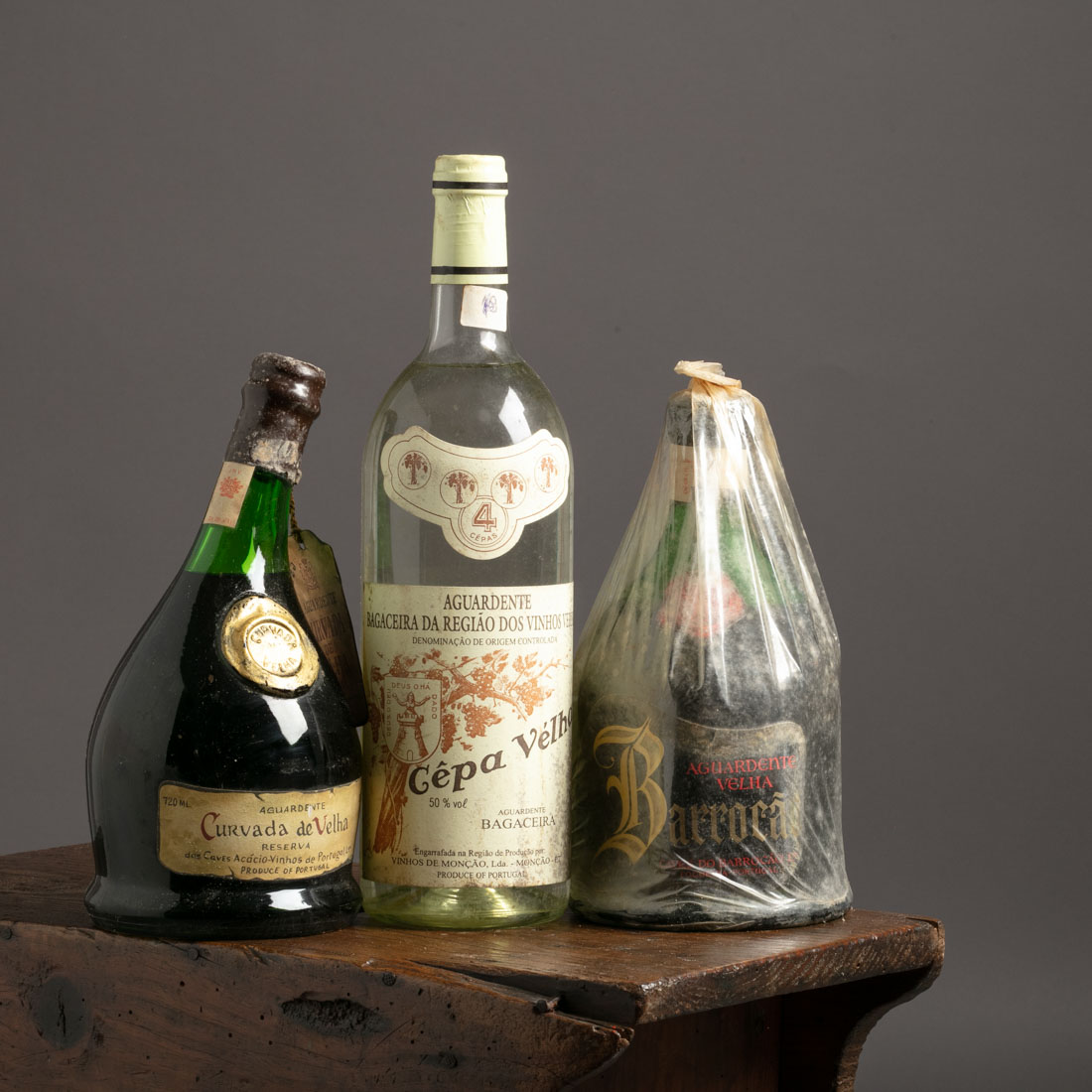 398. AGUARDENTE VELHA BARROCÃO, CURVADA DE VELHA RESERVA E CÊPA VELHA