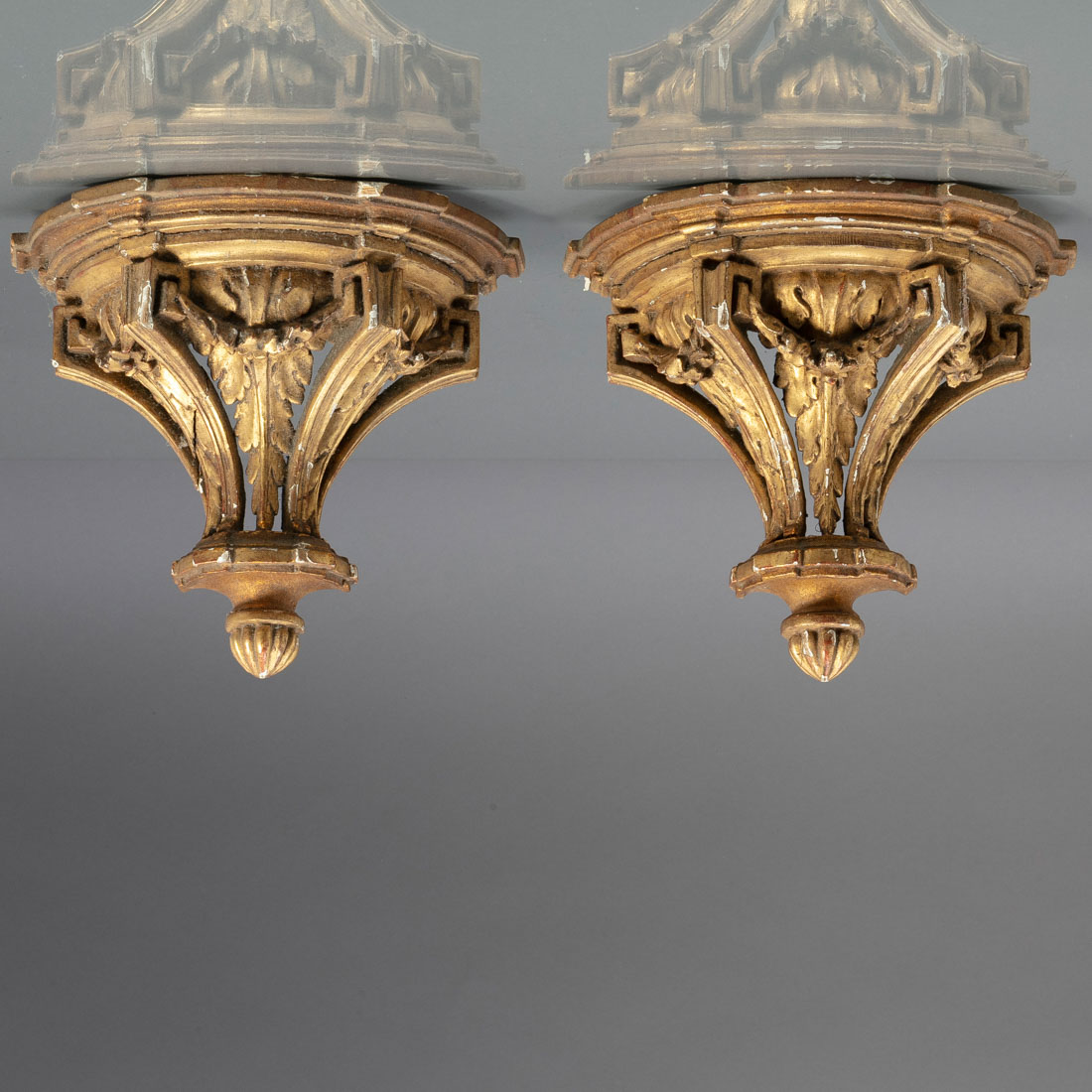 Em madeira entalhada e dourada "grinaldas e folhagem", tampo marmoreado. Falhas e pequenos defeitos.
