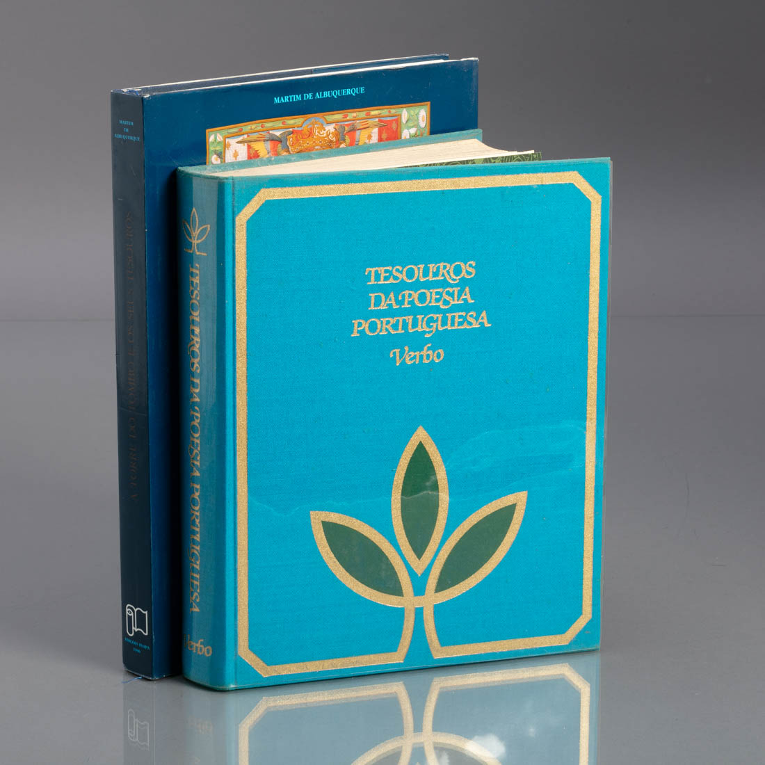 A Torre do Tombo e os seus Tesouros por Martim de Albuquerque, Edições Inapa 1990, e Tesouros da Poesia, selecção, prefácio e notas de António Manuel Couto Viana, ilustrações de Lima de Freitas, Editorial Verbo 1983. Profusamente ilustrados. Sinais de usoe picos de acidez.