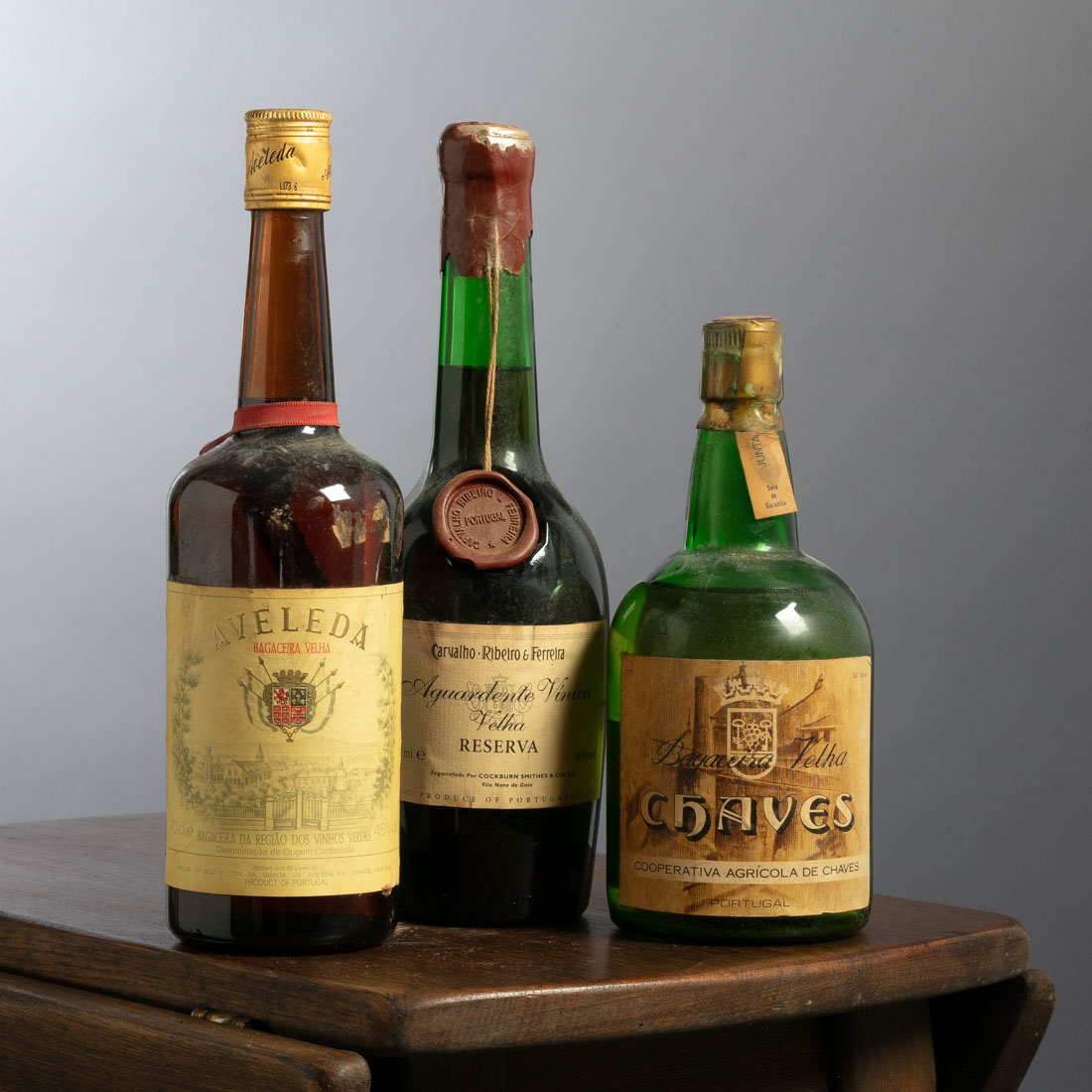 425. AGUARDENTE VÍNICA VELHA RESERVA C.R.F., BAGACEIRA VELHA AVELEDA E CHAVES