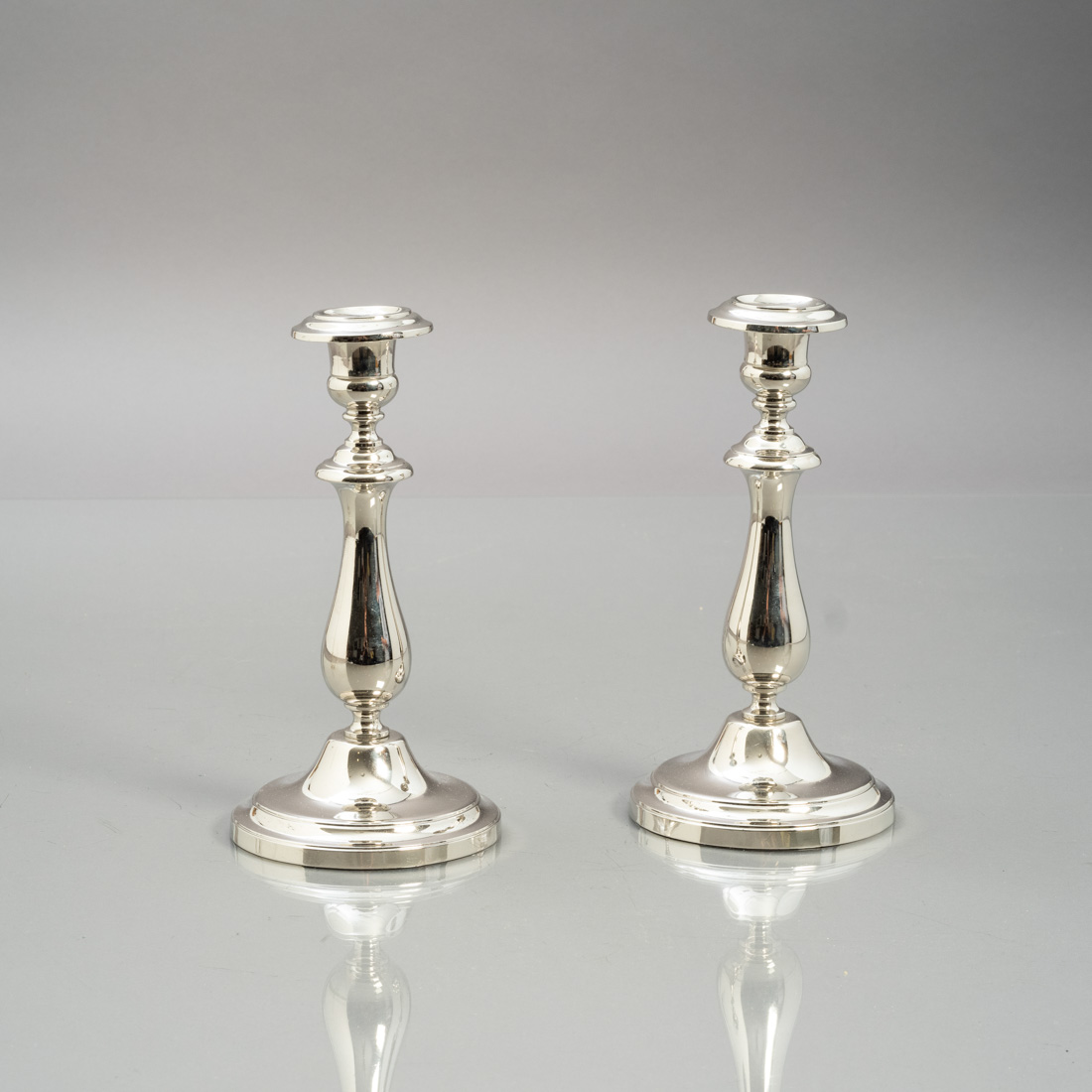 Em metal prateado Christofle, decoração lisa, base redonda. Francês, Séc. XX. Sinais de uso.