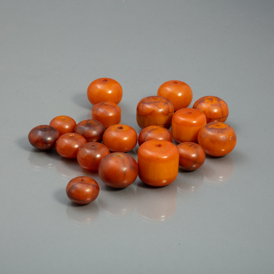 Em âmbar? de diferentes tamanhos. Sinais de uso.