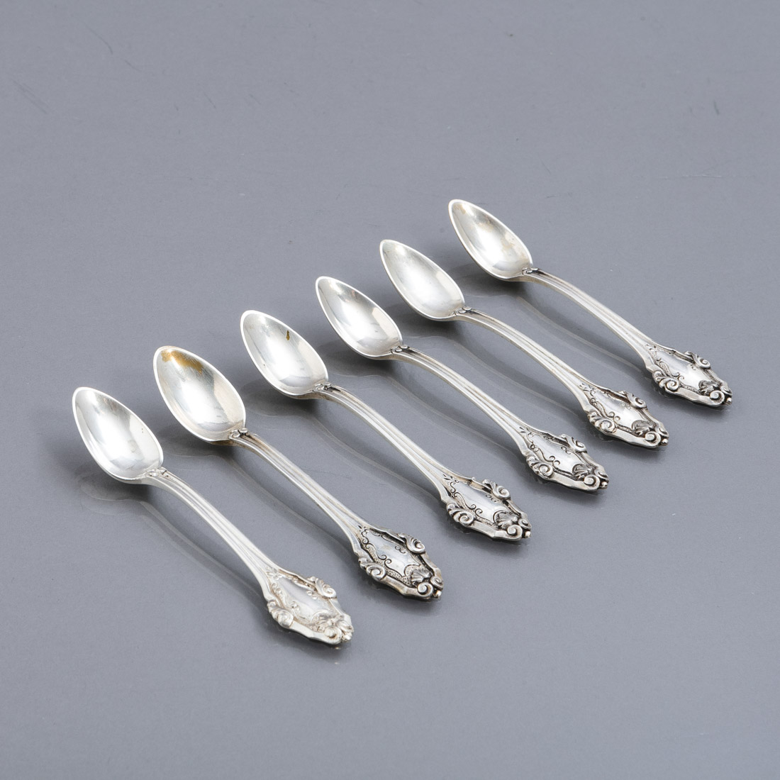 473. CONJUNTO DE SEIS COLHERES DE CAFÉ - Em prata portuguesa contraste águia PA 102 g