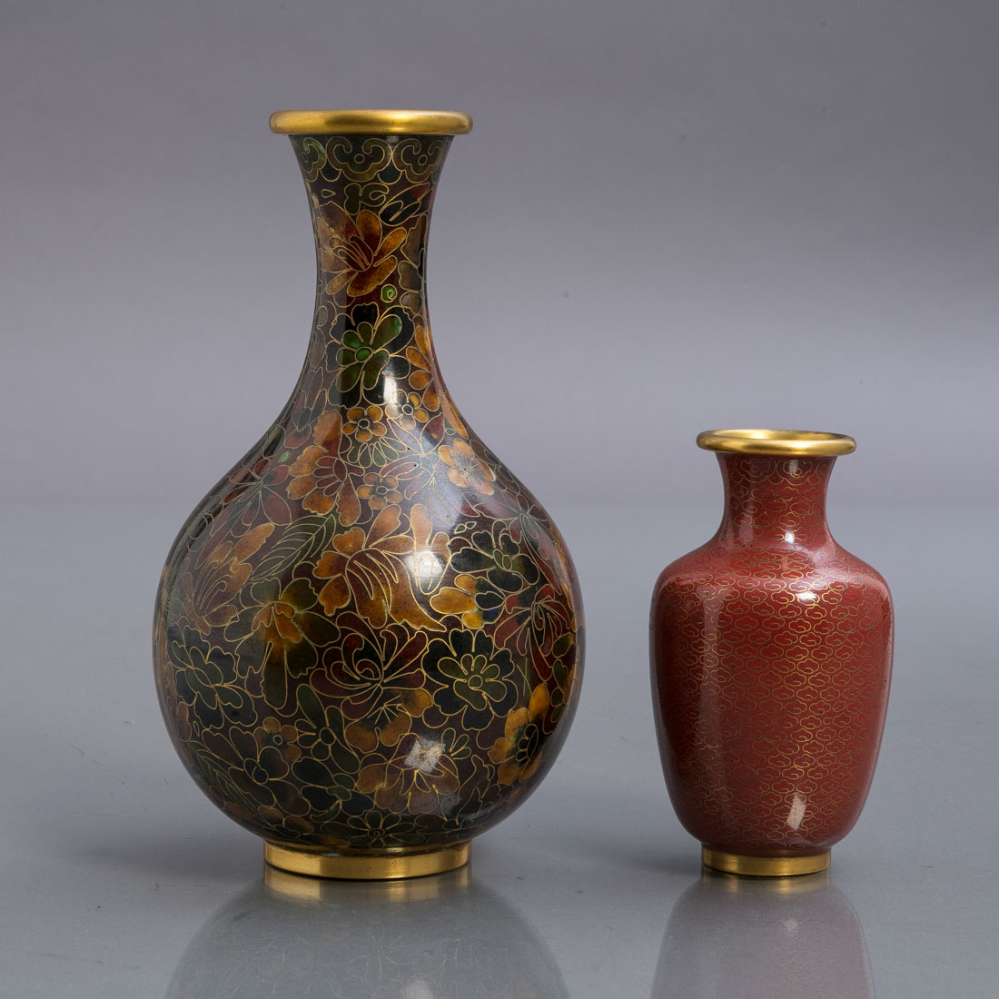 Em metal cloisonné, uma policromada "flores". China, Séc. XX. Sinais de uso.