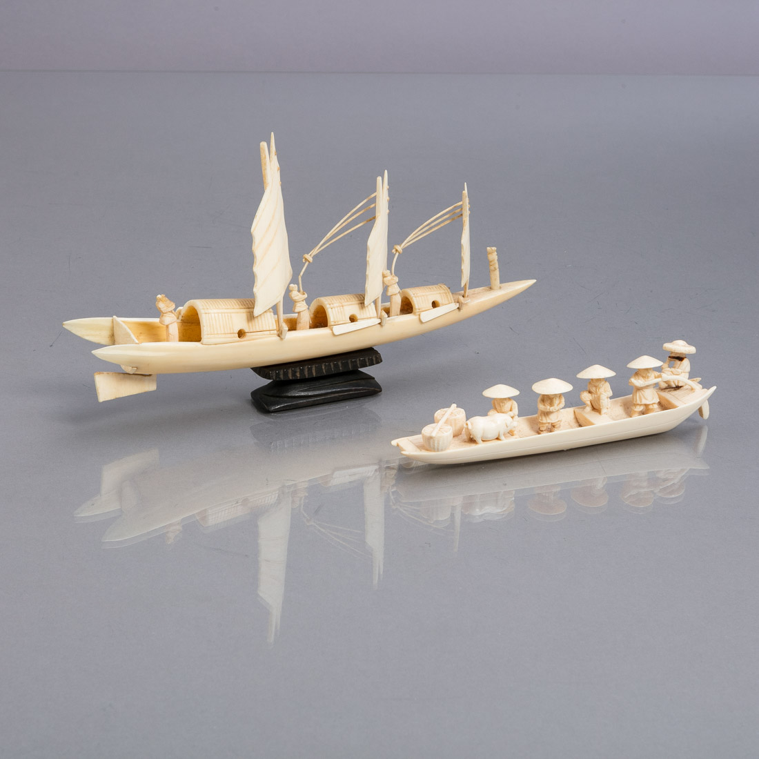 Escultura em osso. China, Séc. XX. Junco com base em madeira. Pequenas falhas.