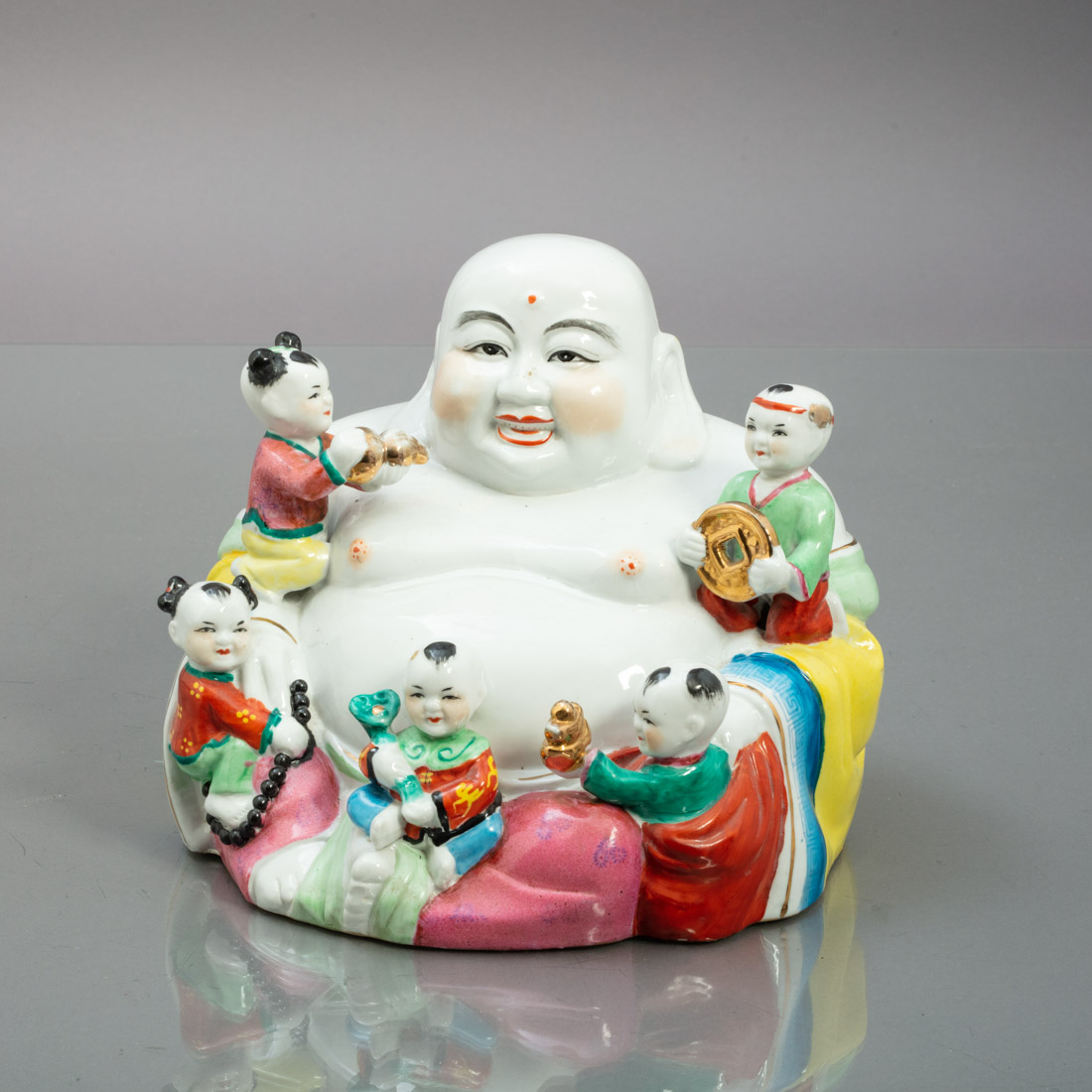 Escultura em porcelana da China, decoração policromada. Sinais de uso.