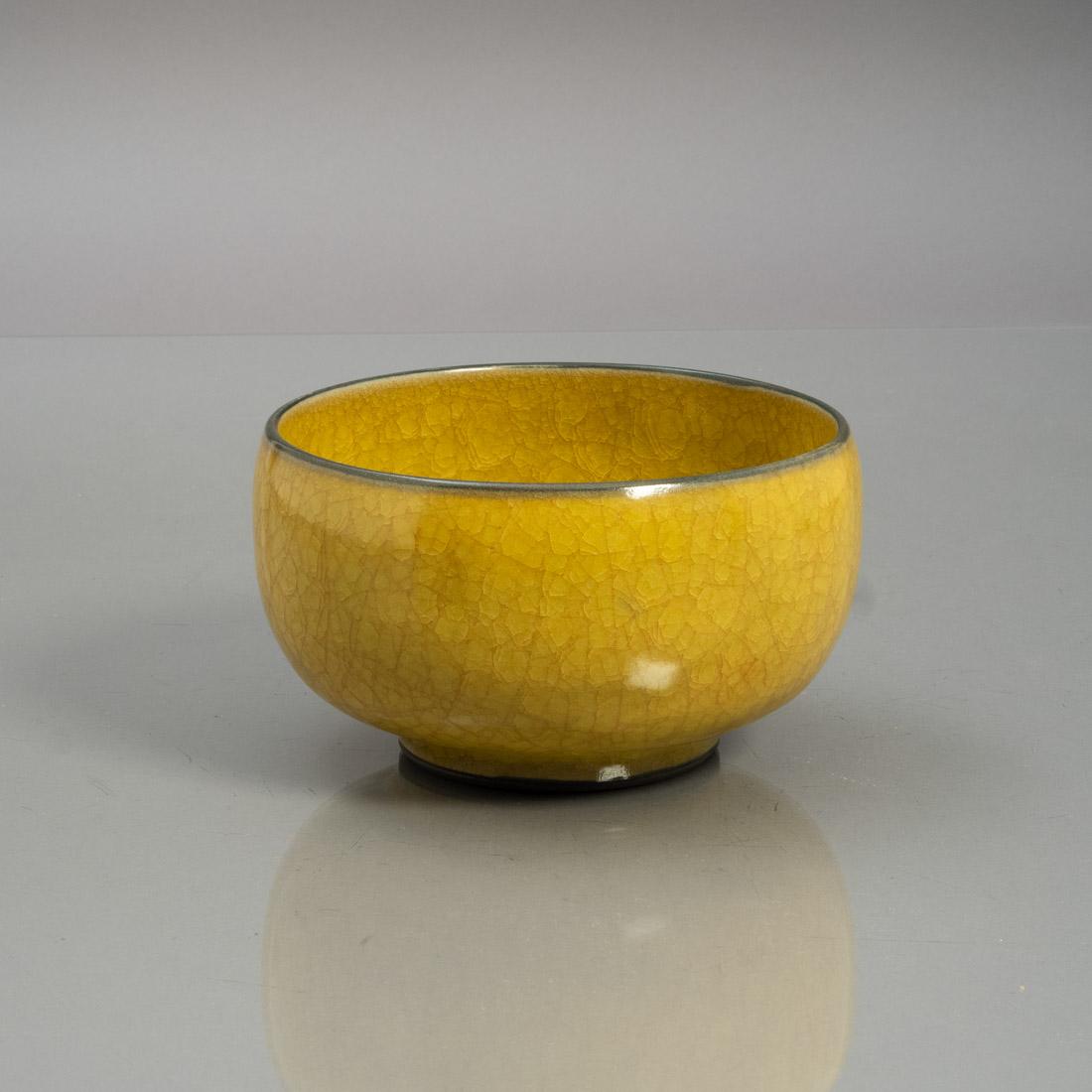 Em cerâmica chinesa, decoração "ice crackle" sobre fundo amarelo. Sinais de uso.
