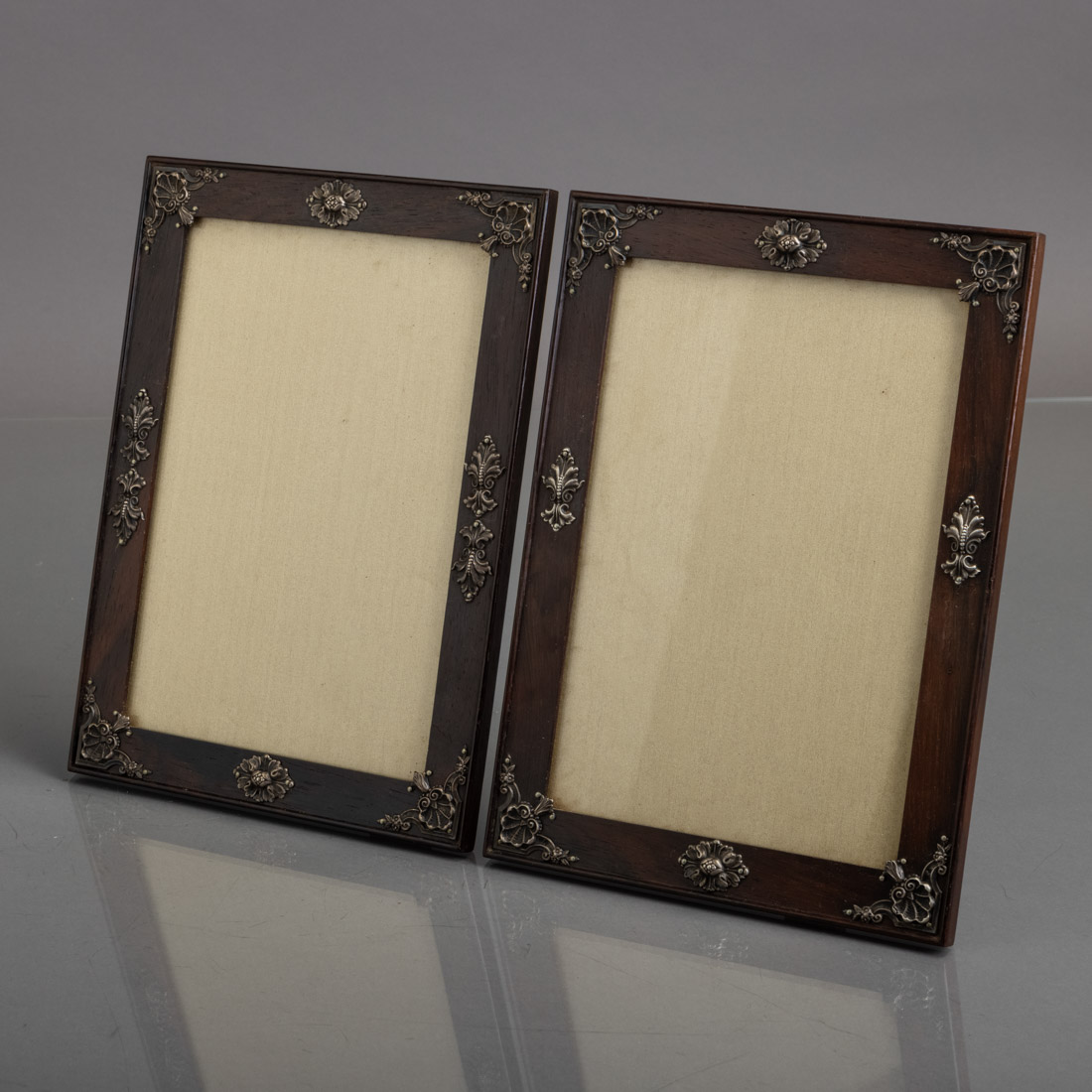 Molduras em pau santo, aplicações em prata portuguesa contraste javali (1887-1937) de 833, decoração relevada. Sinais de uso.