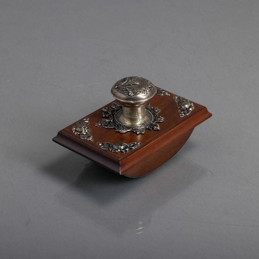 Em madeira com aplicações em prata portuguesa contraste águia (pós 1985) de 835, decoração relevada "flores". Sinais de uso.